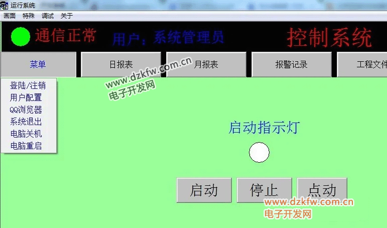 用组态王编辑一个简单的画面,可查通信状态,也可以在线控制PLC动作