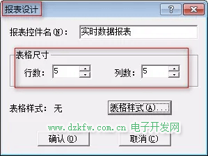在工具箱内选择“报表窗口”,在报表画面上绘制报表,双击灰色部分,弹出“报表设计”对话框;