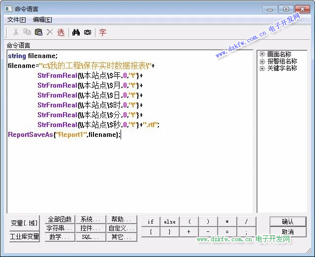 利用系统提供的命令语言可以将实时数据报表以当前时间作为文件名保存在指定的文件夹中,
