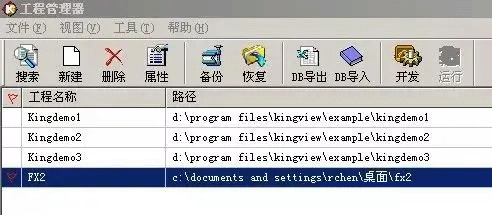 1、新建工程。打开组态王软件,在“工程管理器”中新建一个工程,如FX2(见下图1)。
