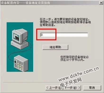 ⑥输入设备地址,按保持默认的设置,即将设备地址设定为0(见下图6);