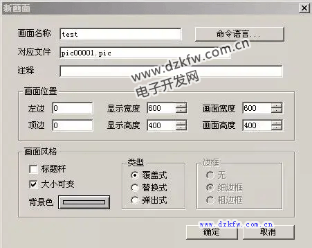 ②在弹出的新画面窗口中输入画面名字,如“test”(见图11);