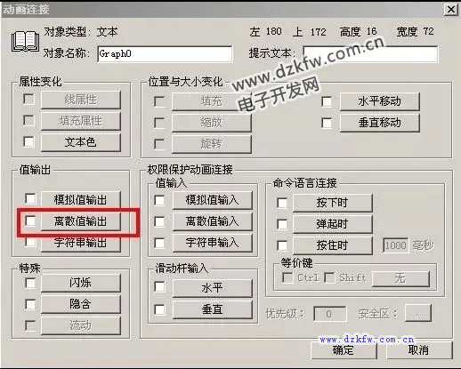 ④双击文本标签,在弹出的动画连接窗口中单击离散值输出(见下图13);