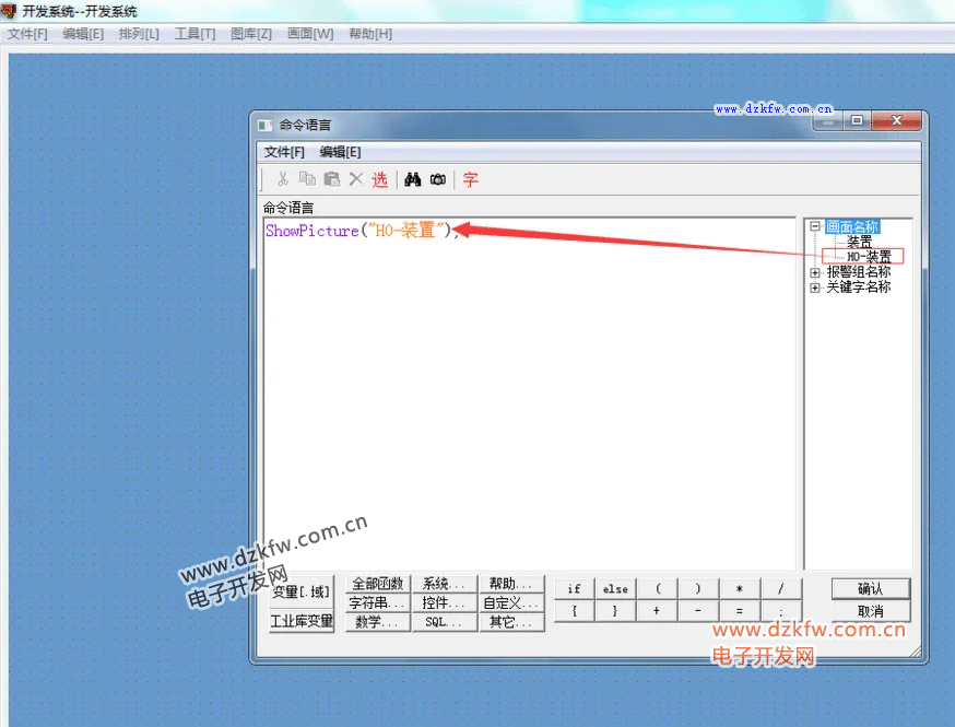 选择函数。在函数选择窗口中找到‘ShowPicture’函数,这是换页函数。