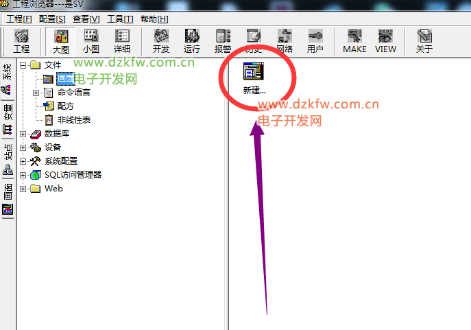 在工程浏览器右侧用鼠标左键双击“新建”图标,弹出新画面对话框。