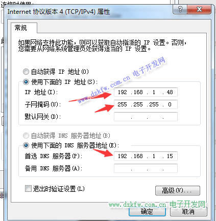 3. 以下设置电脑端的IP地址
