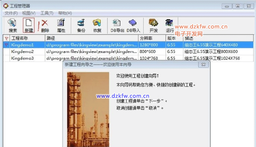 工程管理器:用于新工程的创建和已有工程的管理,对已有工程进行搜索、添加、备份、恢复以及实现数据词典的导入和导出等功能。