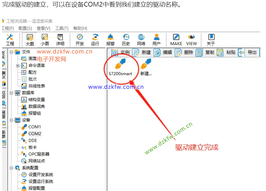 3、建立通讯,我们找到设备COM1,建立S7200smart通讯