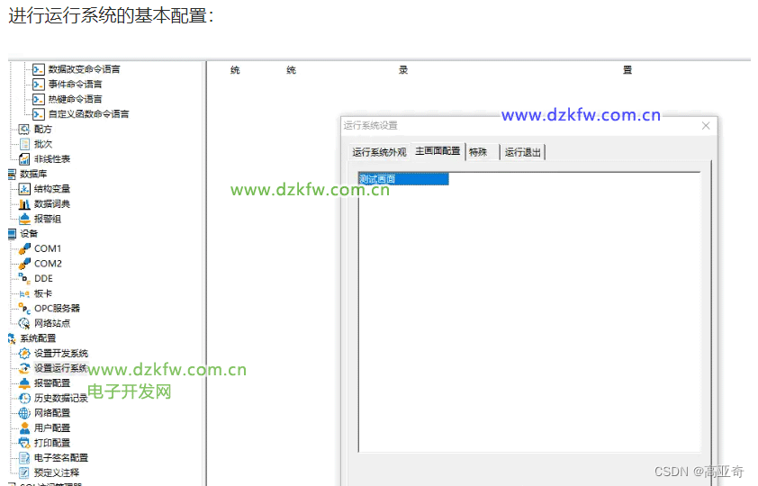 运行系统:工程运行界面,从采集设备中获得通讯数据,并依据工程浏览器的动画设计显示动态画面,实现人与控制设备的交互操作。