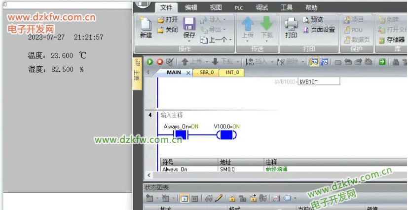 我们采用西门子S7-200 smart(SR20)与一个温湿度采集器进行485通讯,将数据传输给组态王软件进行显示。