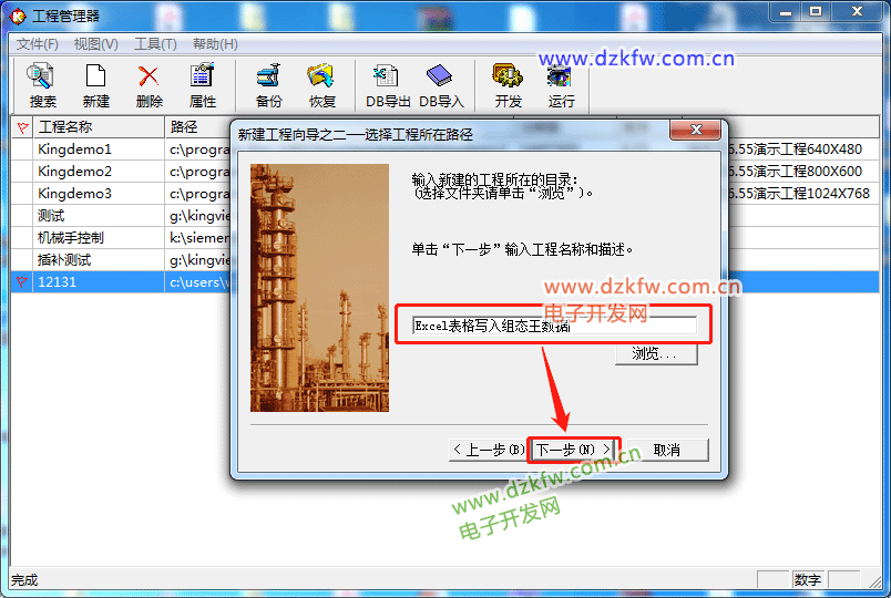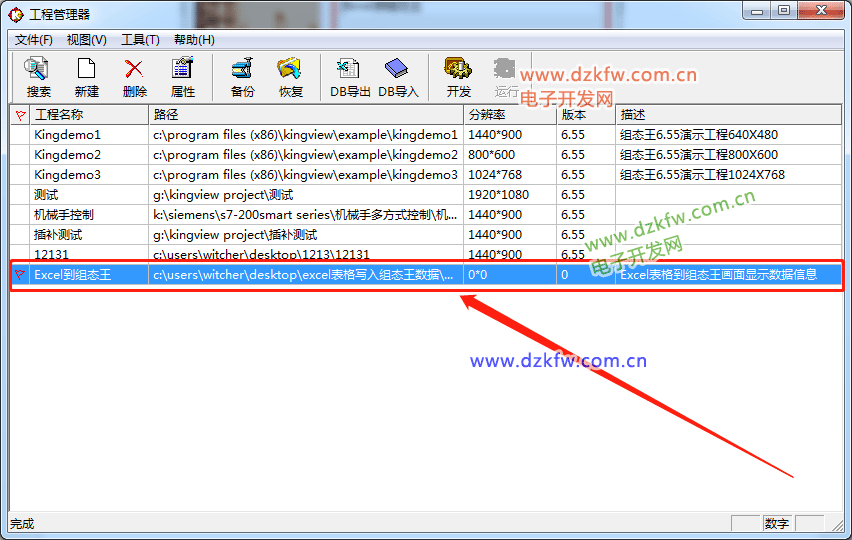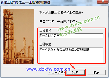 第四步:(工程名称写入Excel到组态王,工程描述写入Excel表格到组态王画面显示数据信息)