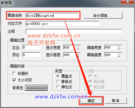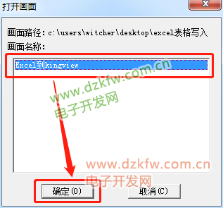 第十六步:(画面名称写入:Excel到kingview)。