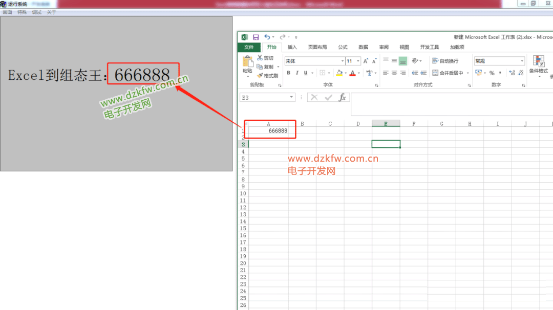 第二十四步:(打开一个空的Excel表格,在Excel表格第一行第一列随便输入一个数值,组态王就能立刻显示你在Excel表格上输入的数值)。
