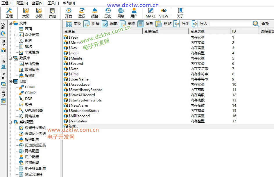 变量类型:内存类型用来在内部使用,I/O类型用来读取外部数据,数据分为离散类型、整数、实数、字符串。