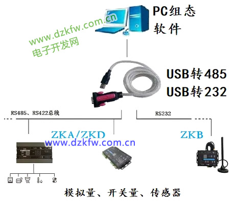 以 ZKA-4488-RS485 为例,介绍综科智控 485 设备与组态王进行通讯的步骤设置。ZKA-4488-RS485 是 8 路数字量输入(DI),8 路数字量输出(DO),4 路模拟量输入(AI,0/4-20mA),4 路模拟量输出设备(AO,0/4-20mA),485 通信总线。