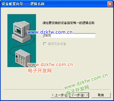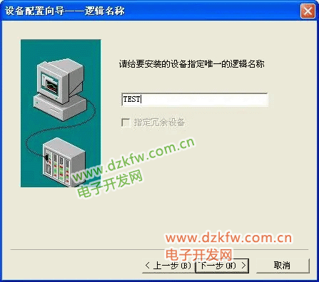 为设备取一个名称,在此输入 TEST,单击“下一步”,弹出“设备配置向导”, 如下图所示。