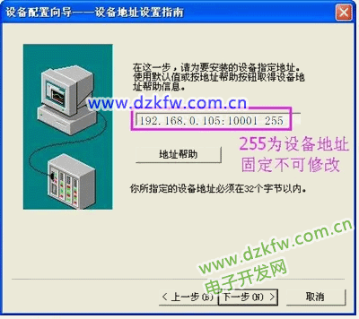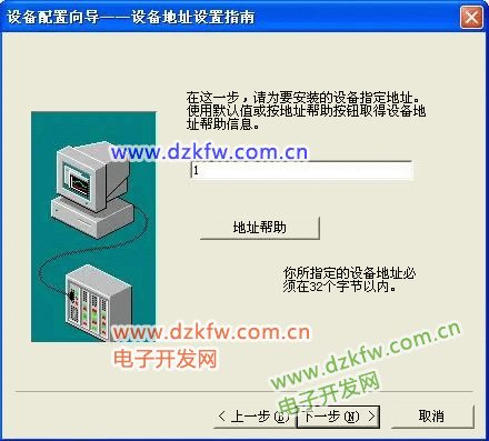 填写设备地址,设置为 1,单击“下一步”,弹出“设备配置向导”,如下图所