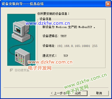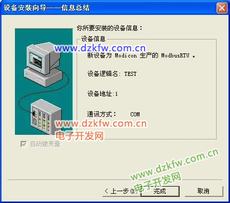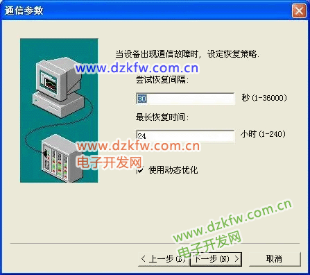 设置通信故障恢复参数(一般情况下使用系统默认设置即可),单击“下一步”,弹出“设备配置向导”,如下图所示。