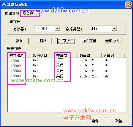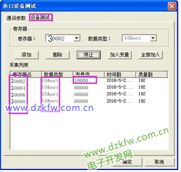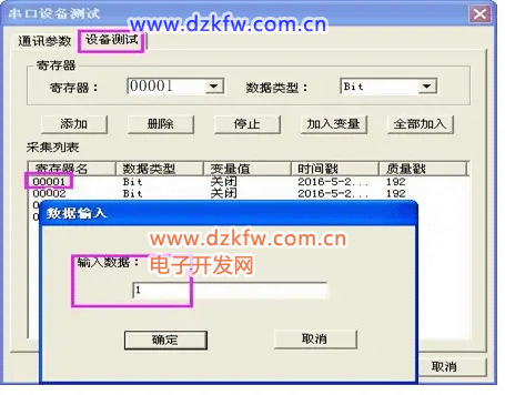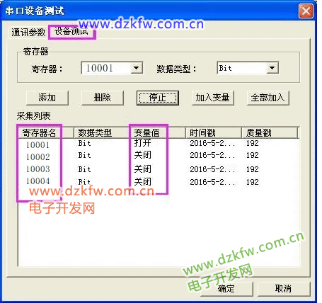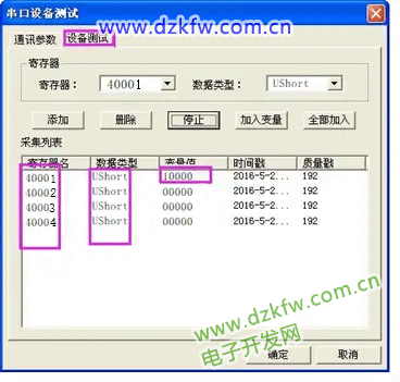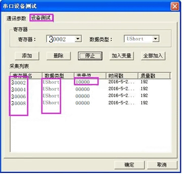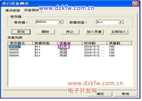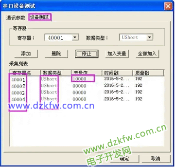 >>>设备测试>>>添加寄存器>>>读取