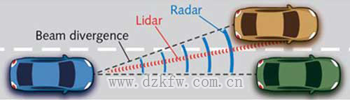 这三种ToF技术,想拥有更高的角分辨率图像,LiDAR是最好的选择,这是因为LiDAR图像的衍射(光束散度)更小,对邻近物体识别能力比雷达更优秀(见图1)。对于高速情况下需要足够时间来应对如迎头相撞等潜在危险,更高的角分辨率尤为重要。