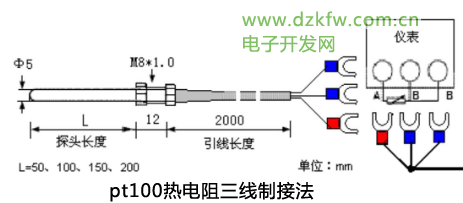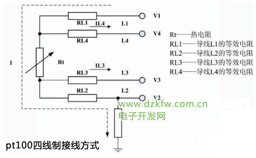从热电阻的测温原理可知,被测温度的变化是直接通过热电阻阻值的变化来测量的,因此,热电阻体的引出线等各种导线电阻的变化会给温度测量带来影响。为消除引线电阻的影响同般采用三线制或四线制。