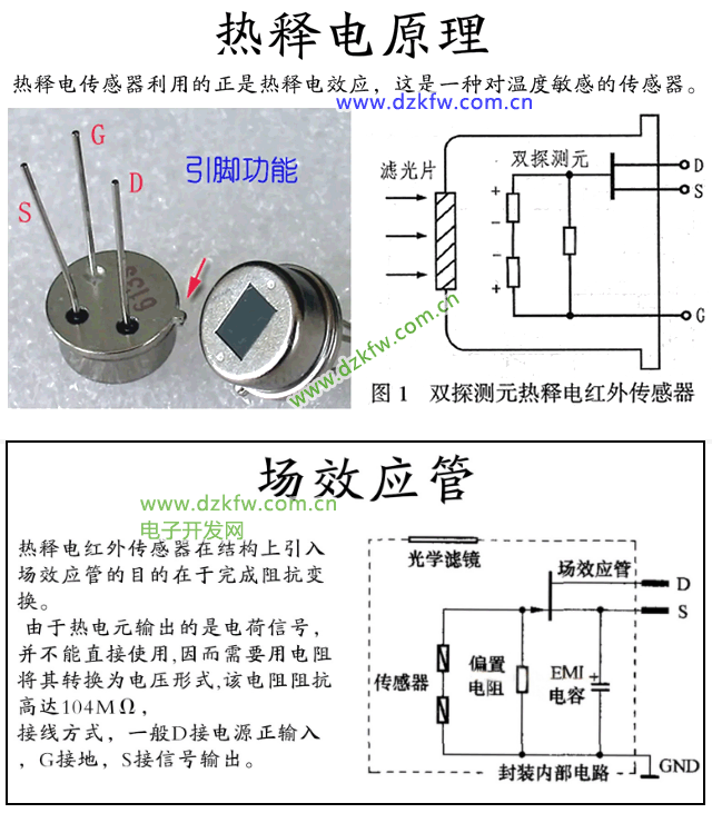 (1)热释电传感器简介: