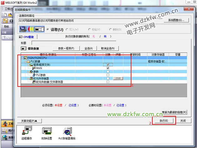 1)打开编程软件GX Works2,点击“在线”中的“PLC读取”;