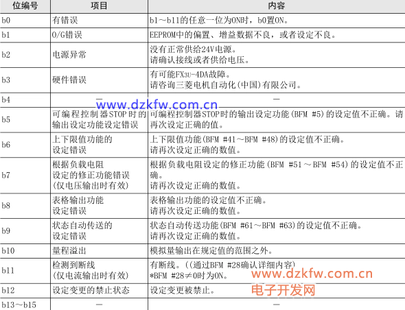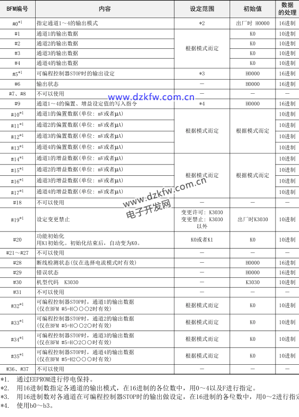 ▼ FX3U -4DA模拟量输出模块BFM一览