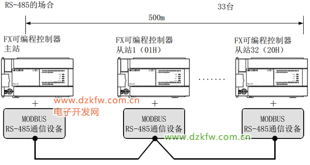 MODBUS通信网络如果是RS-485通信,则可使用1台主站控制32站从站,如果是RS-232C通信,则可使用1台主站控制1站从站。
