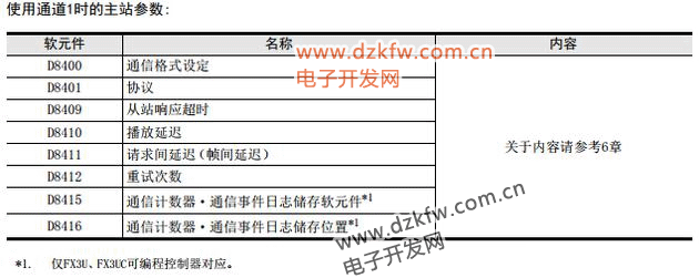2. N:N网络和MODBUS通信将N:N网络和MODBUS通信设定在相同通道中时,N:N网络会动作,但MODBUS通信设定会被忽略。此时对可编程控制器的该通道,“因其他通信占有通信端口”出错信息(D8402/D8422中出错代码#203)会被储存。
