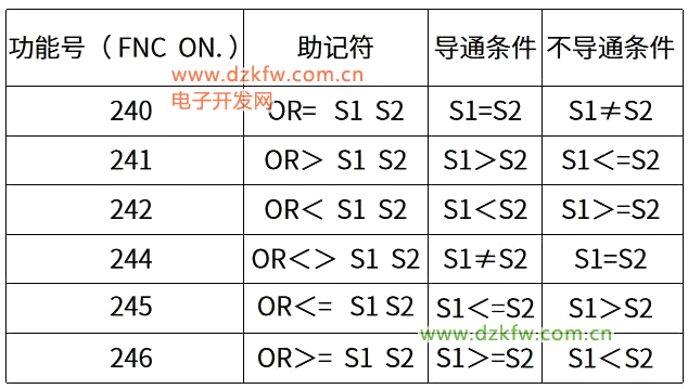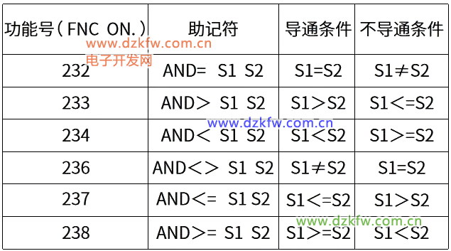 其功能号为232~238,但没有235,这在其触点比较指令中也是类似的,从224~230,却没有227,别问我为什么,因为我也不知道~