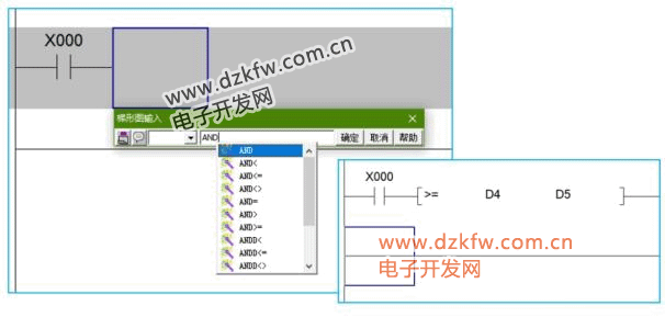 串接触点比较指令的编程类似于起始触点比较指令,在输入完毕后“AND”字母不会显示。那么问题来了,若是只看梯形图,我们怎么知道这是起始的还是串接的呢?