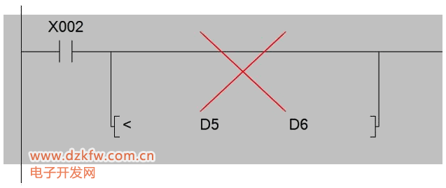 源址S1与S2除了可以是常数外,还可以是各种字元件,但在这里要注意的一点是:ZCP指令在正常执行的情况下,S1<S2,也就是说,S1所存的数据应小于S2所存的数据,若S1>S2,PLC就会把S2作为S1处理。例如在ZCP D10 D11 D12 Y0中,D10内存的数据为K10,D11所存的数据为K8,此时若D12所存的数据为K8或K9,D12都是M0接通。