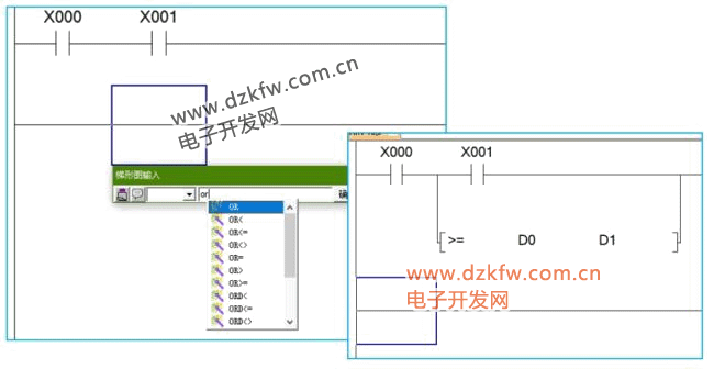 并接触点比较指令在编写完毕后,字母“OR”同样不显示,且串接触点比较指令可以用起始触点比较指令替代使用,只不过在编写时多两步竖线输入。