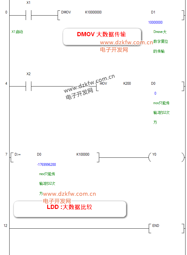 比较二个值,将结果(大于,小于,等于)输出给软元件(DMCP,32位)