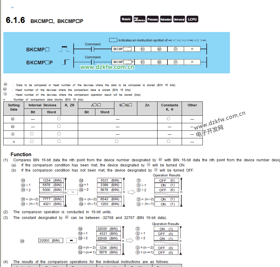 其中,比较标志可以是 PLC 状态寄存器(C)、数据寄存器(D)、输入寄存器(X)、输出寄存器(Y)等。位地址则表示需要比较的位在 PLC 中的存储地址。在执行该指令时,PLC会比较所有指定位的状态,并将比较结果保存到指定的比较标志位中。