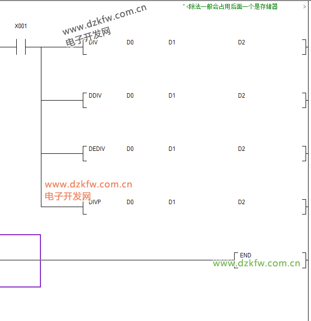4.2.2 除(DIV)(除法会占用后面的数据存储器,除法除不完一般会取近似值)
