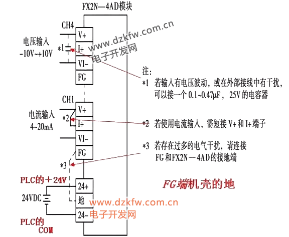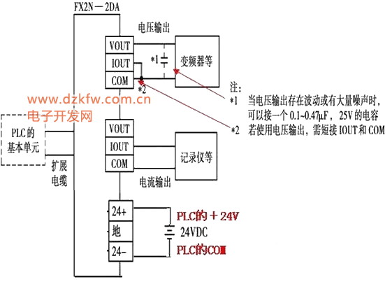 FX2N—2DA模块消耗FX2N基本单元电源。