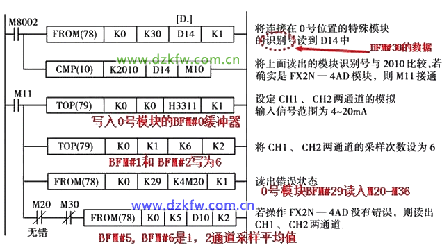 BFM #30 存储FX2N—4AD模块的识别码(即K2010)。可以通过FROM指令读出。