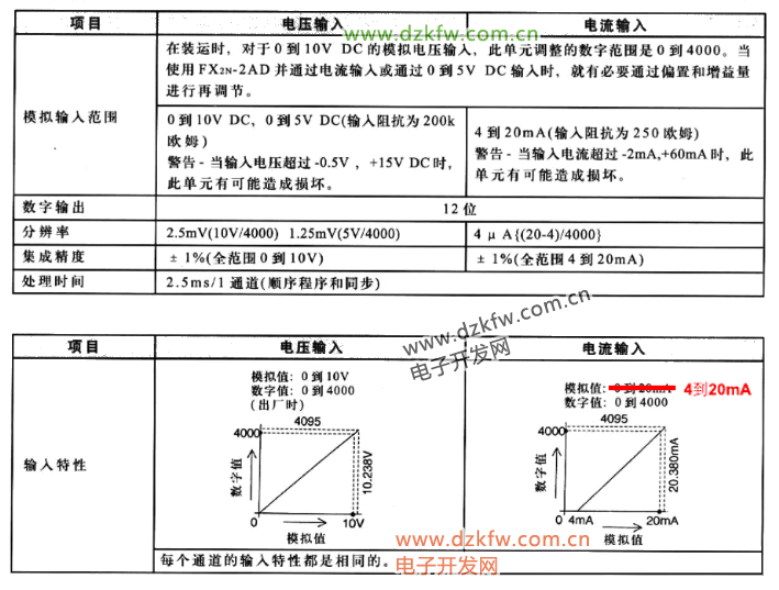 两个频道的模拟输入值可以接受0-10V DC(点),0-5V DC,或者4-20mA之间。