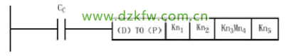 Kn5 需要传送的点数,常用K表示。FROM、FROMP格式时,以16位二进制为单位,例:K1代表16位;采用DFROM、DFROMP格式时,以32位二进制为单位,例:K1代表32位