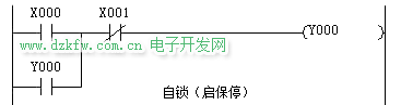 自锁需要并联一个线圈输出的常开触点,当启动后,并联的常开触点起到维持输出继续闭合的作用,就是自锁。我们最常用的启保停程序就是自锁。