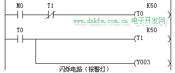 闪烁电路,也叫振荡电路,就是灯亮与灭之间的不断循环,通过改定时器的设定值可以控制灯的闪烁频率。