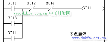 多地控制一个输出时,把所有常开触点并联,常闭触点串联,就可以实现多点启停。