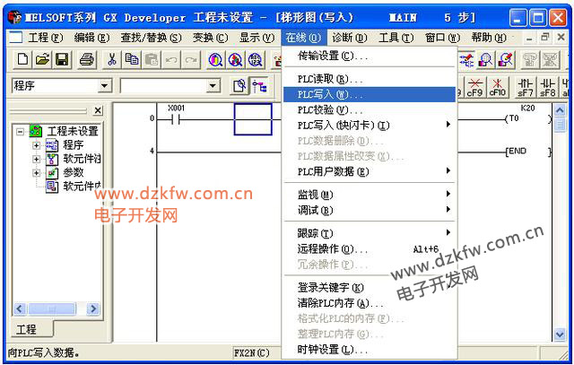 若要把刚才所写的程序写到PLC里面,则选择“PLC写入”,