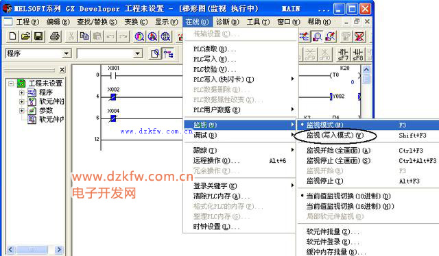 注:若要监控PLC程序的状态,一定要在通讯成功后才能执行,若没有与PLC通讯成功,则不能对PLC监控。
