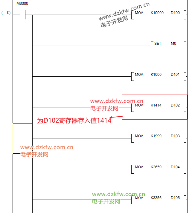 Z0=1,Y0Z0=Y1,此时Y1点的动状态要看有没有驱动。Z0为寄存器,不存在点不点亮。当输入MOV K1 Z0时,即可让Z0等于1,当Z0=2时,Y0Z0=Y2,程序为ld m8000、mov d0z0 d20v10。说明:若Z0=2,v10=5,运行指令后,即将D2内面的数据传送到D30。