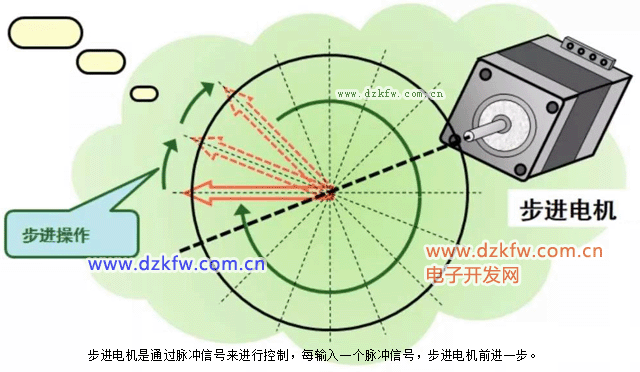 度量单位,也就是如何衡量步进马达行走的距离---步进角,就是一个脉冲马达转动的角度。步进马达的步进角一般为1.8°。0.9°,0.72°,0.36°,0.0288°,等等。步进角越小,则步进马达的控制精度越高。我们根据步进角可以控制马达行走的精确距离。比如说,步进角0.72°,马达旋转一周需要的脉冲数为360/0.72=500脉冲,也就是对步进马达驱动器发出500个脉冲信号,马达才旋转一周。