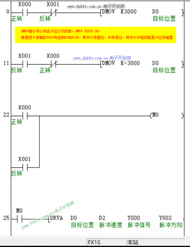 2三菱FX系列PLC绝对位置控制指令DRVA应用: