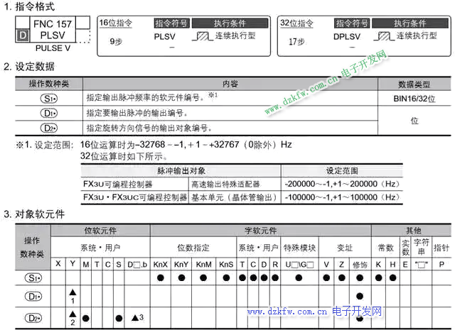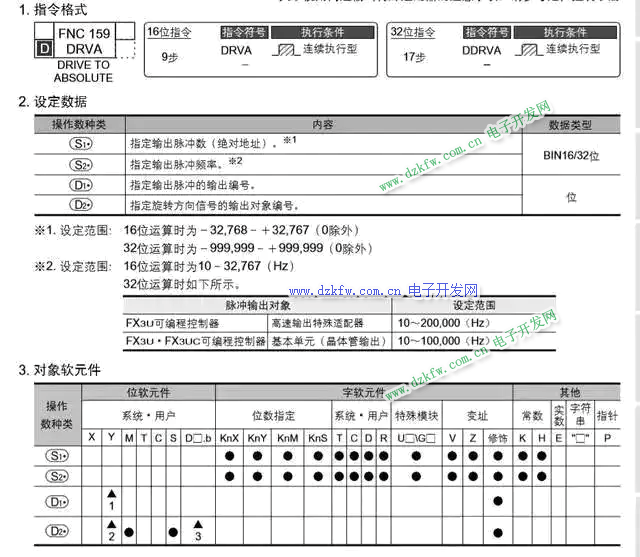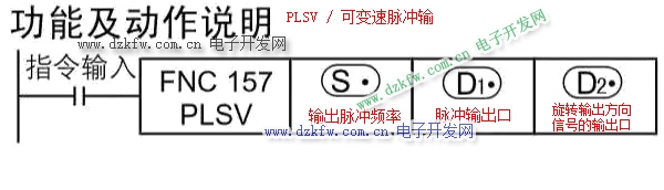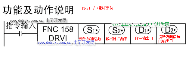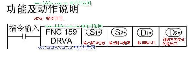 以绝对驱动方式执行单速定位的指令。该指令是按指定的端口、频率和运行方向输出脉冲,令伺服执行机构运动到指定目的点。只有晶体管输出PLC才能使用该指令。